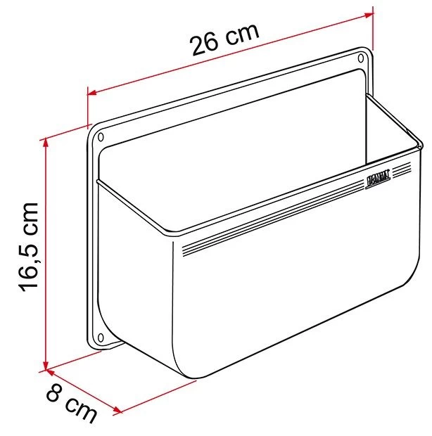 A medium-sized multipurpose pocket of scratch-resistant plastic, easy to install with the provided screws.