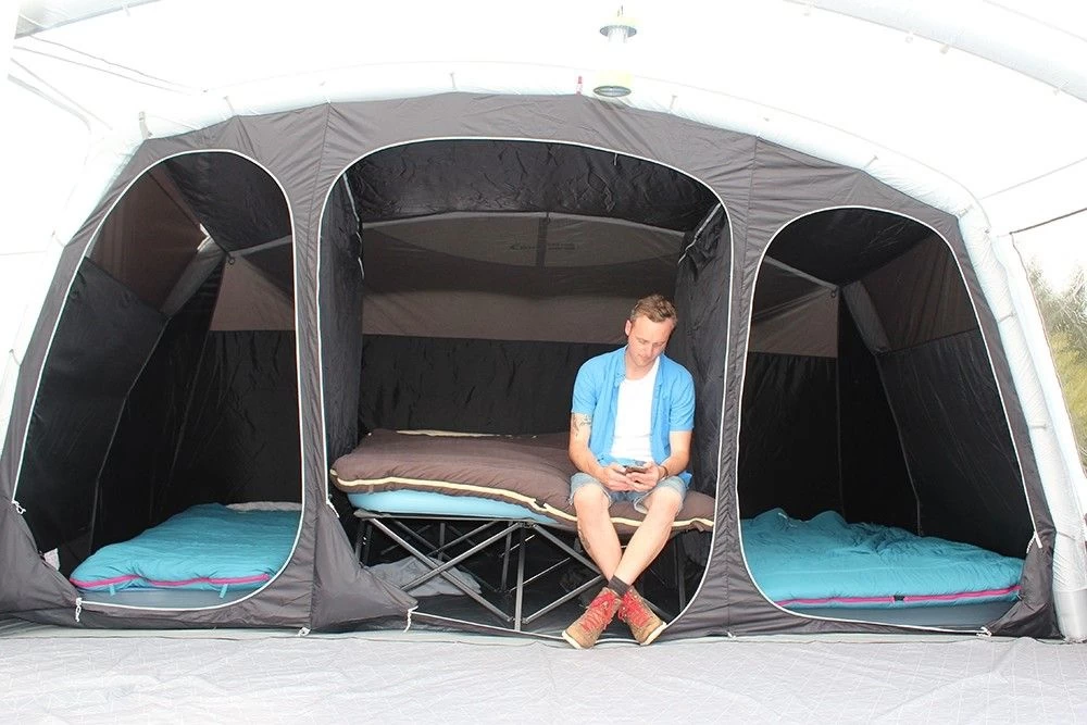 Upgraded for 2023 is the multi-award winning Airedale tent range, offering more value than ever before. This Premium Seven + Four berth Airedale 7.0SE inflatable family tent has been updated further for the 2023 season, building on the success of the critically acclaimed and exclusive multi-functional double-side annexe (Registered Design).