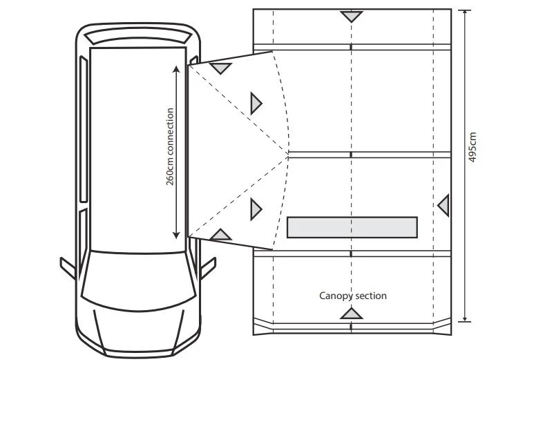 The addition of twin piping (6mm x 4mm) ensures compatibility across the vast majority of awing rail connections. We have implemented Phoenix Mesh fly screen panels in the side door to optimise airflow and keep insects at bay; an assisted healing smart material with the structurally incorporated ability to repair snag damage, typically caused by consistent usage. Simply manipulated, the mesh will then return to its original form. The integral front porch creates a convenient canopy area, where you can relax outdoors, while sheltered from the elements.