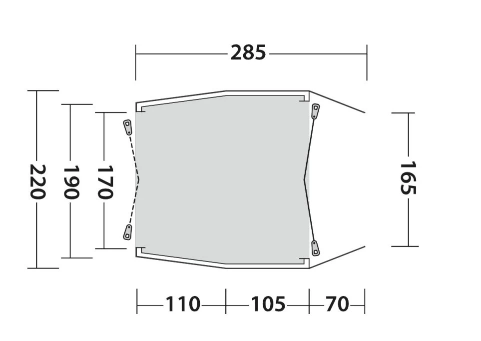 *Be aware that (UV) ultraviolet rays will damage your tent if you expose it to direct sunlight for extended periods of time. Outtex® fabric used on Outwell® tents increases the lifetime of the tent. Outwell products are for camping use, usually 2-5 weeks a year. They are not designed for permanent usage and should only be used as camping products. Camping near the sea or lake can further enhance the effect of UV radiation. The same applies to poles and metal parts.