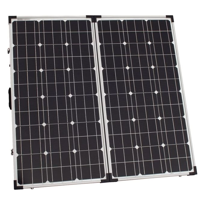 - High efficiency 75W + 75W folding monocrystalline solar panels