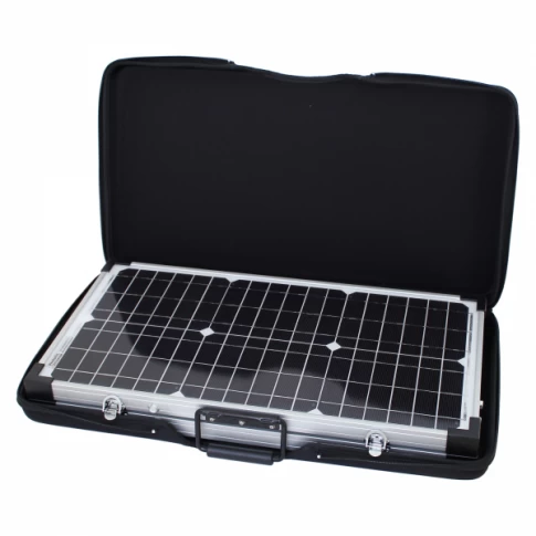The kit comes with a stand which is very easy to set up and adjust. A handle and latches ensure ease of storage and portability. The storage case included with the kit is made with a layer of foam, which will completely protect the glass and the frame and prevent any accidental damages. In addition, the corners of solar panels are protected by plastic which reduces the risk of damage and adds to the aesthetically pleasing design.