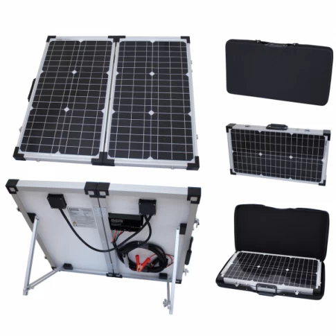 This high quality, waterproof 60W folding solar kit is designed to provide free power for charging 12V batteries, for example in vehicles and boats (motorhome, caravan, camper, narrow boat, yacht etc) or any other systems with a 12V battery or battery bank. It comes with everything required for battery charging: an advanced 10A 12V solar charge controller, and 5m cable with a battery plug, fuse and crocodile clips. You can start using the kit immediately – simply connect it to your battery and find a well-lit area for the folding solar panels.