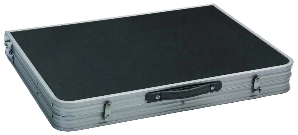 A premium aluminium quality folding table. It features an aluminium frame that is height adjustable between two different heights swell as adjusters on the bottom of the feet for the uneven ground to ensure that the table will always be as flat as possible.