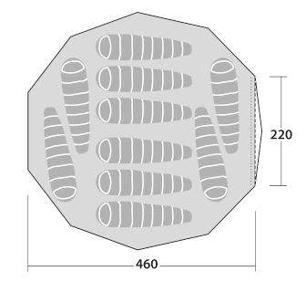 Protective eaves run around the tent to shelter doors and walls from rain runoff. The zip-in groundsheet features a zip to the centre alloy pole, enabling it to be rolled away to create a safe area in which to use an optional tent stove and a place for muddy boots.